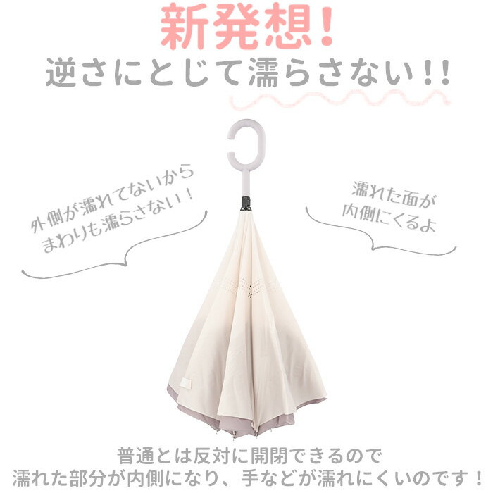 逆さ傘 定番 さかさ傘 逆さがさ 長傘 おしゃれ メンズ レディース 60cm 8本骨 シンプル かわいい 自立 C型持ち手 ハンズフリー 反対傘 逆折式 車 バス 電車 逆さに開く 濡れない 濡らさない リバースアンブレラ
