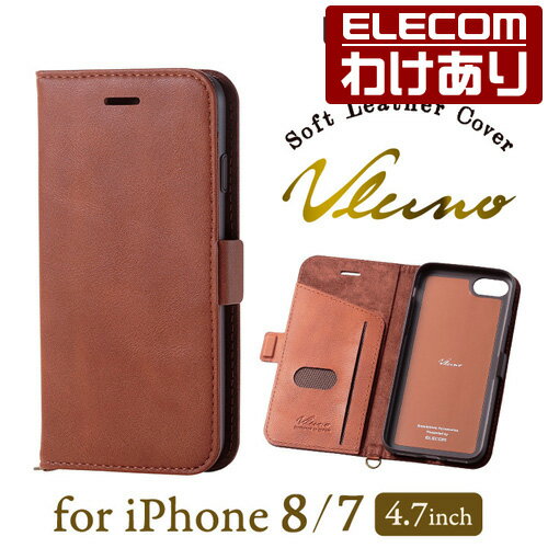 iPhone8 ケース Vluno 手帳型 ソフトレザーカバー 通話対応 ストラップホール付 ブラウン スマホケース iphoneケース:PM-A17MPLFYBR【税込3300円以上で送料無料】[訳あり][ELECOM:エレコムわけありショップ][直営]