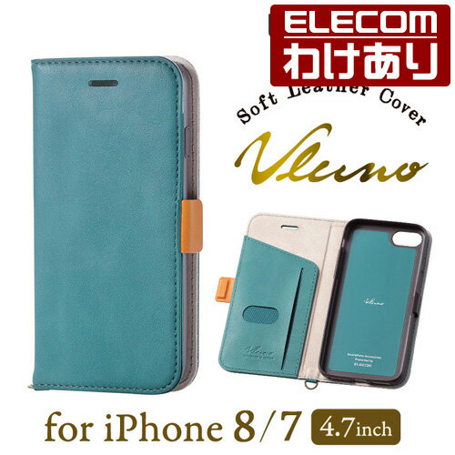 iPhone8 ケース Vluno 手帳型 ソフトレザーカバー 通話対応 ストラップホール付 エメラルドグリーン スマホケース iphoneケース:PM-A17MPLFYGNL【税込3300円以上で送料無料】[訳あり][ELECOM:エレコムわけありショップ][直営]