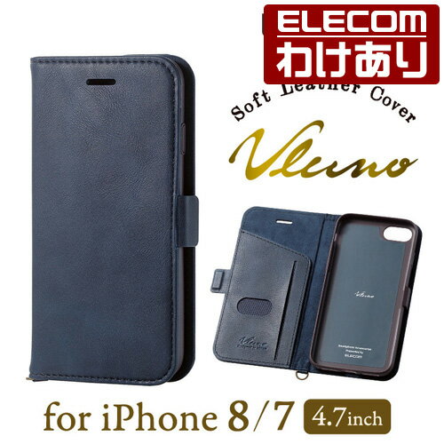 iPhone8 ケース Vluno 手帳型 ソフトレザーカバー 通話対応 ストラップホール付 ネイビー スマホケース iphoneケース:PM-A17MPLFYNV【税込3300円以上で送料無料】[訳あり][ELECOM:エレコムわけありショップ][直営]