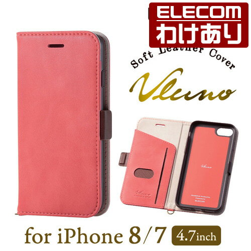 エレコム iPhone8 用 4.7インチ ケース カバー Vluno 手帳型 ソフトレザーカバー 通話対応 ストラップホール付 サーモンピンク スマホケース iphoneケース:PM-A17MPLFYPN【税込3300円以上で送料無料】[訳あり][ELECOM:エレコムわけありショップ][直営]