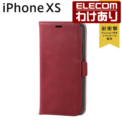 iPhone XS ケース 手帳型 Vluno ソフトレザーカバー 磁石付き レッド スマホケース iphoneケース:PM-A18BPLFYRD【税込3300円以上で送料無料】[訳あり][ELECOM:エレコムわけありショップ][直営]